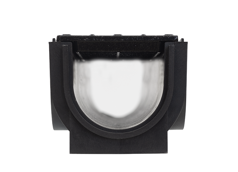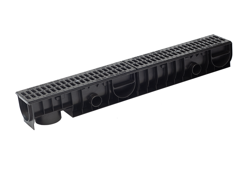 Главная / Продукция / Внешнее водоотведение / Standart DN 100 Series / КОМПЛЕКТЫ / Лоток Ecoteck STANDART 100.125 h129 с решеткой 100 чугунной поперечной, кл. С250