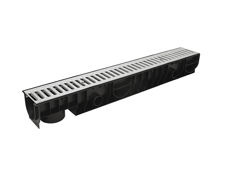 Главная / Продукция / Внешнее водоотведение / Standart DN 100 Series / КОМПЛЕКТЫ / Лоток Ecoteck STANDART 100.125 h129 с решеткой стальной, кл. А15