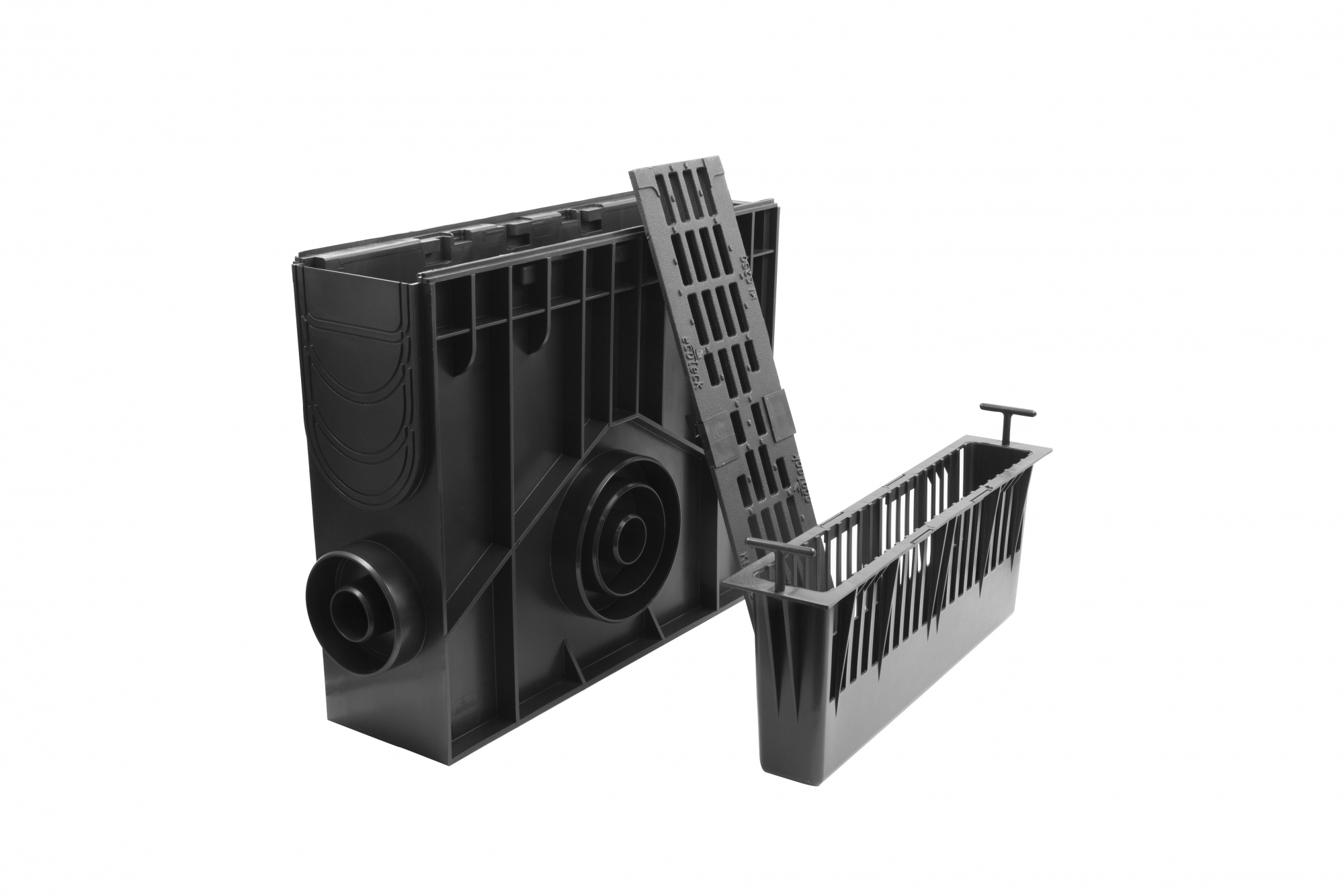 Главная / Продукция / Внешнее водоотведение / Standart DN 100 Series / ПЕСКОУЛОВИТЕЛИ / Пескоуловитель 100 h419 пластиковый в сборе с решеткой 100 чугунной щелевой С250