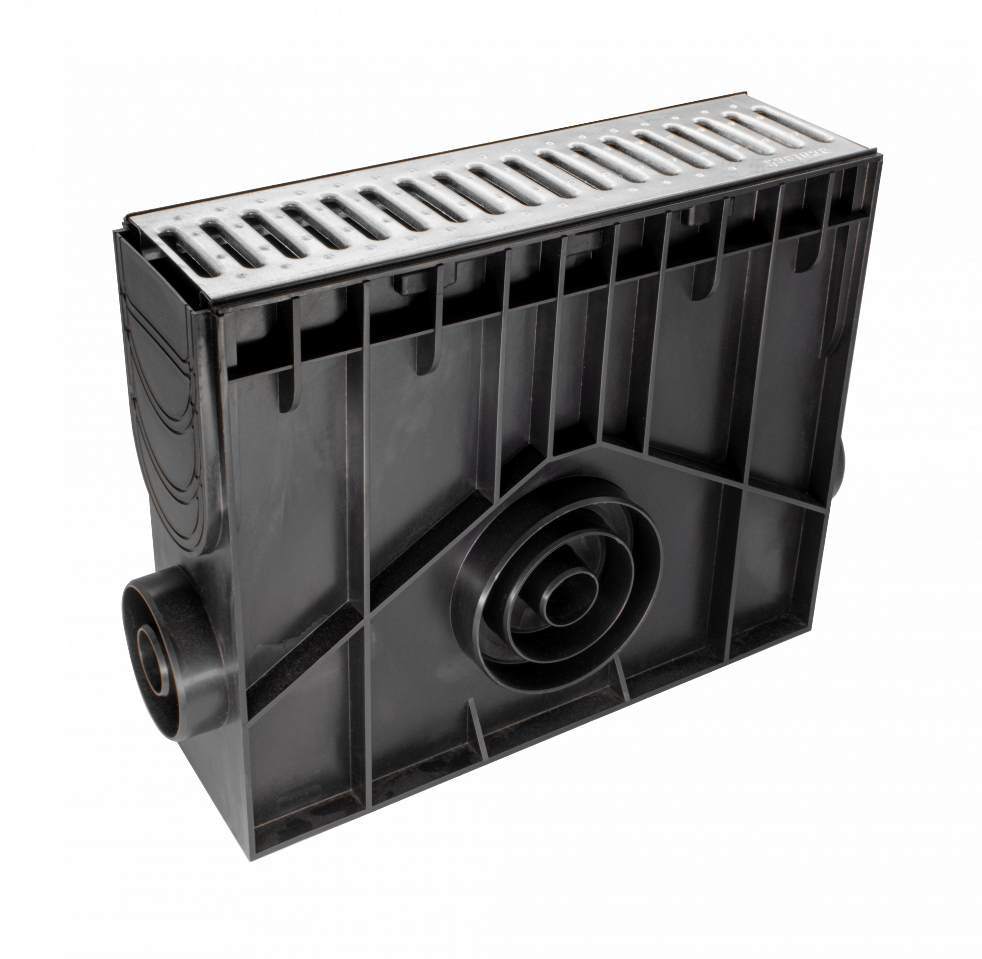 Главная / Продукция / Внешнее водоотведение / Standart DN 100 Series / ПЕСКОУЛОВИТЕЛИ / Пескоуловитель 100 h419 пластиковый в сборе с решеткой 100 стальной оцинкованной без отверстий, кл. А15 (черный)
