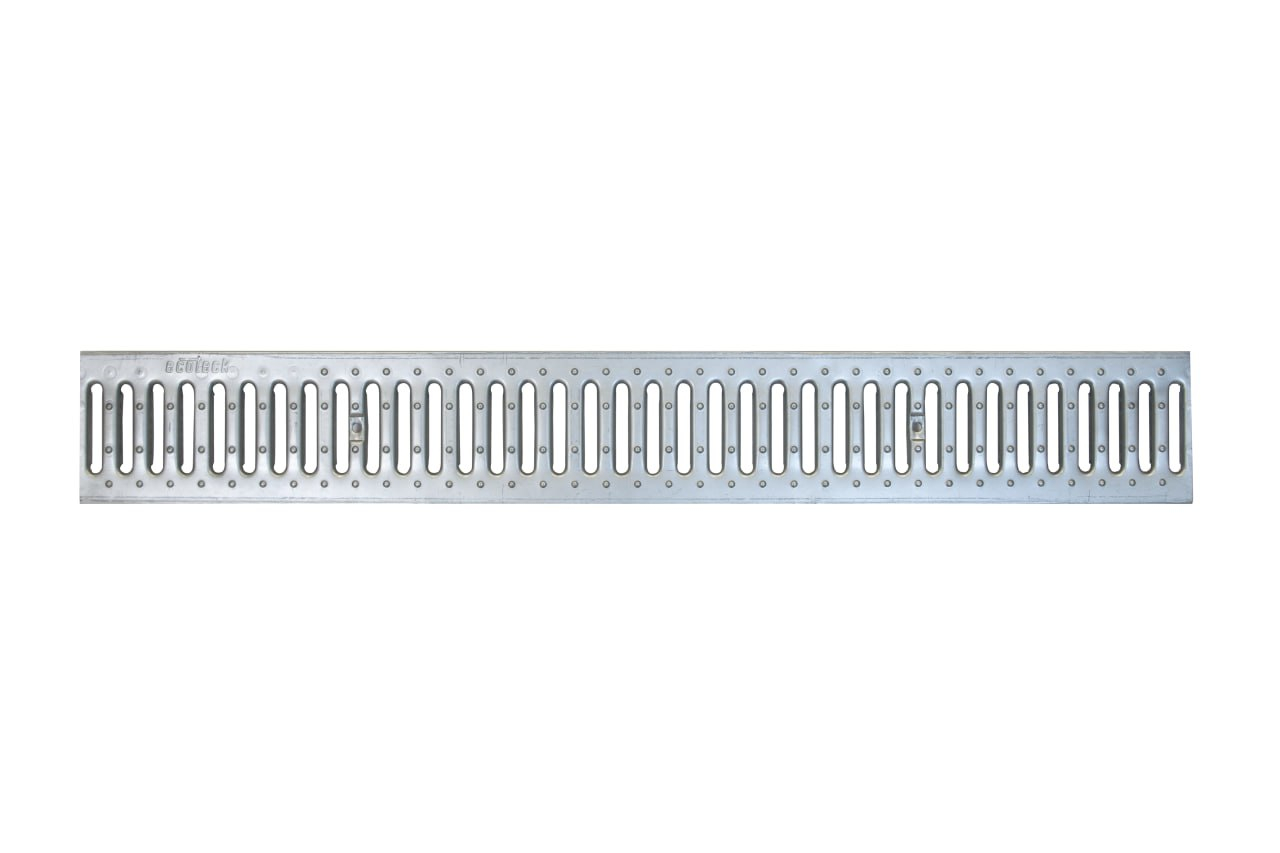 Главная / Продукция / Внешнее водоотведение / Standart DN 100 Series / РЕШЕТКИ К ЛОТКАМ / Решетка водоприемная Ecoteck STANDART 100 стальная штампованная оцинкованная (с отверстиями), кл. А15