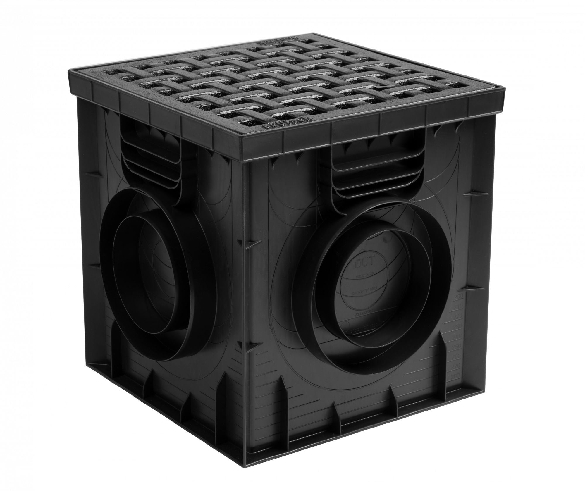 Дождеприемник пластиковый 300х300 в сборе с решеткой чугунной, кл. C250 (черный)